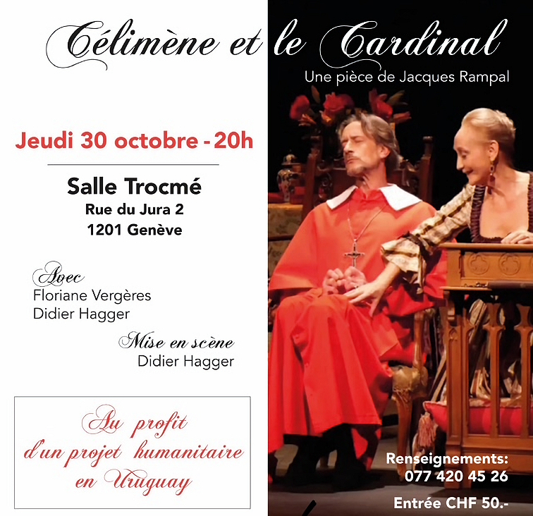 Madame, Monsieur, cher public, Ars Memoria a le plaisir de vous proposer Célimène et le Cardinal (ou Le Misanthrope vingt ans après), une comédie en vers de Jacques Rampal qui vous questionnera avec humour et gravité sur le poids de la religion (des religions), sur la place des femmes dans la société, sur l’intolérance et les extrémismes – hier, aujourd’hui, demain ; ailleurs et ici – et aux nombreux interdits combattus, et à la vigilance nécessaire toujours…