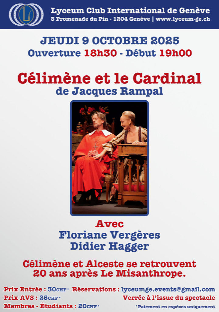Madame, Monsieur, cher public, Ars Memoria a le plaisir de vous proposer Célimène et le Cardinal (ou Le Misanthrope vingt ans après), une comédie en vers de Jacques Rampal qui vous questionnera avec humour et gravité sur le poids de la religion (des religions), sur la place des femmes dans la société, sur l’intolérance et les extrémismes – hier, aujourd’hui, demain ; ailleurs et ici – et aux nombreux interdits combattus, et à la vigilance nécessaire toujours…